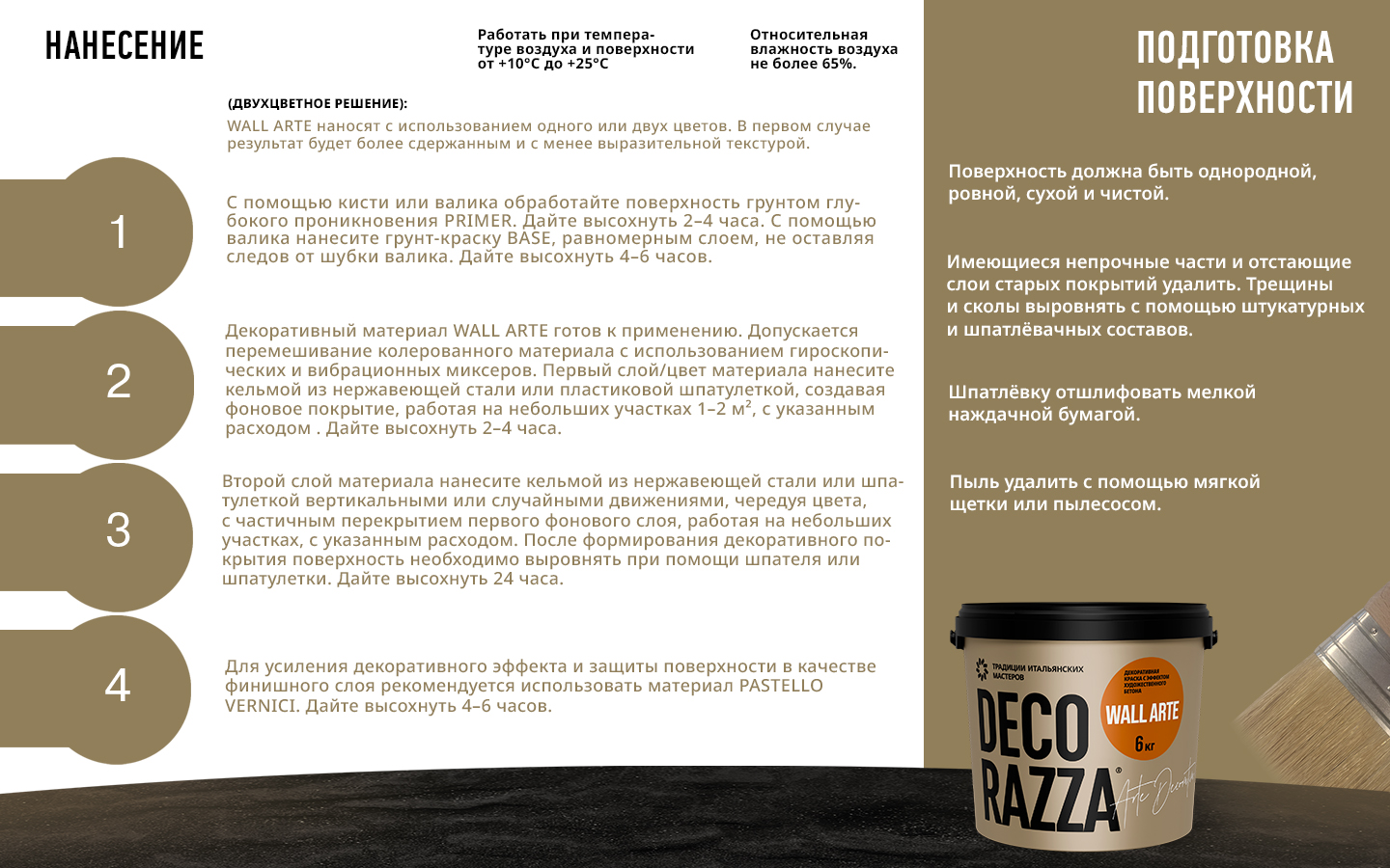 Качество подготовки поверхности должно соответствовать категории К4 по СП 71.13330.2017.Способ нанесения