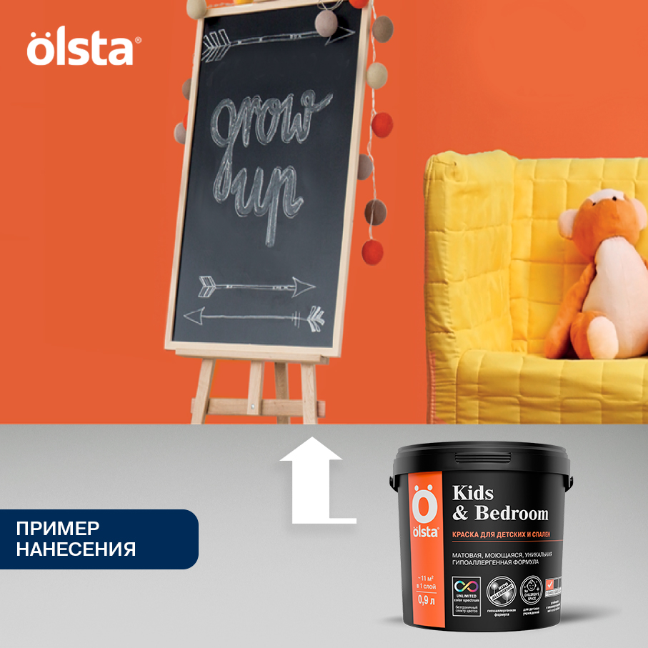 Матовая краска Olsta Kids & Bedroom разработана специально для отделки детских и спален. Состав на основе водной дисперсии акрилового полимера отличается гипоаллергенной формулой, формирует ровное прочное покрытие без подтеков. Поверхность легко отмывается от загрязнений мягкими чистящими средствами, не боится влажной уборки. Производится с белой и прозрачной базой для компьютерной колеровки в насыщенные оттенки по каталогу.