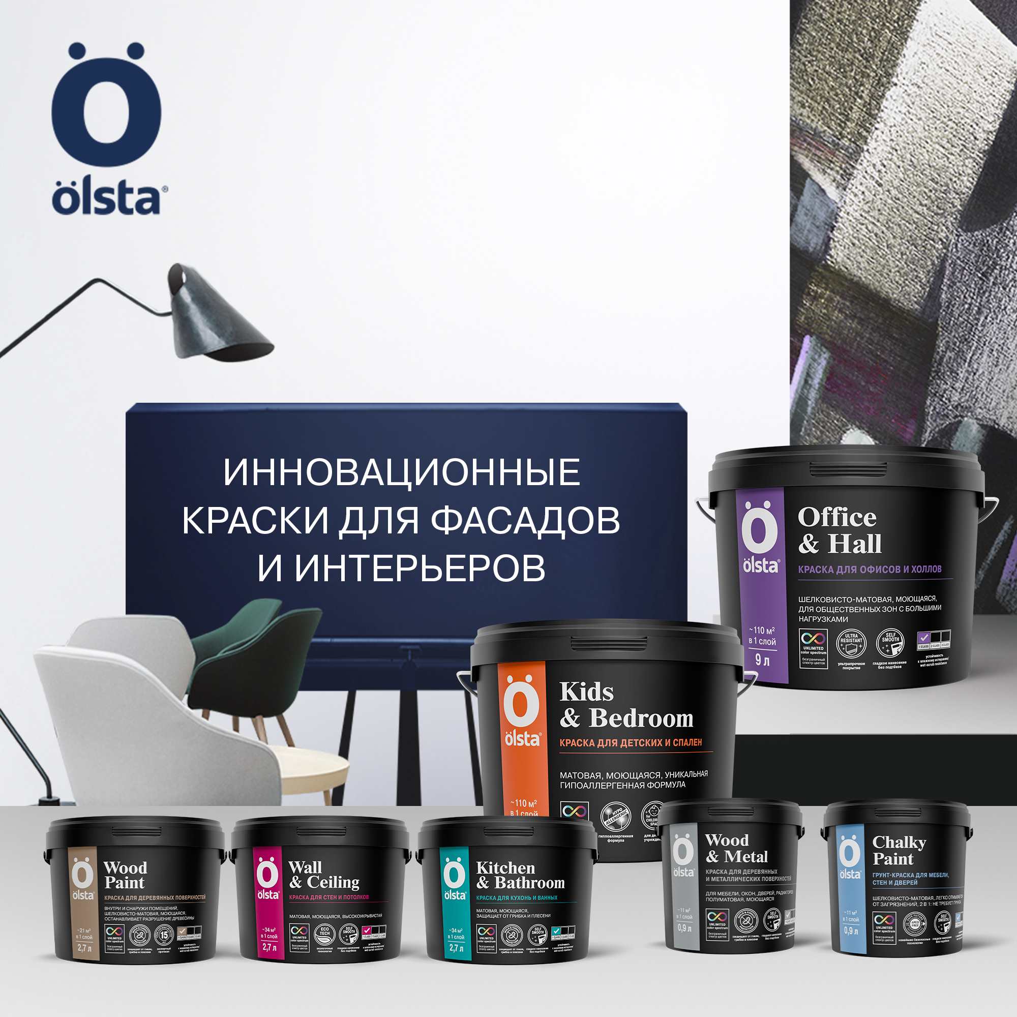 Предлагаем купить: Краска для детских и спален Kids&bedroom OLSTA в Ярославле. Это Высококачественная водоразбавляемая краска для окраски потолков в сухих помещениях. Может использоваться в детских учреждениях и помещениях административной группы лечебно-профилактических учреждений
