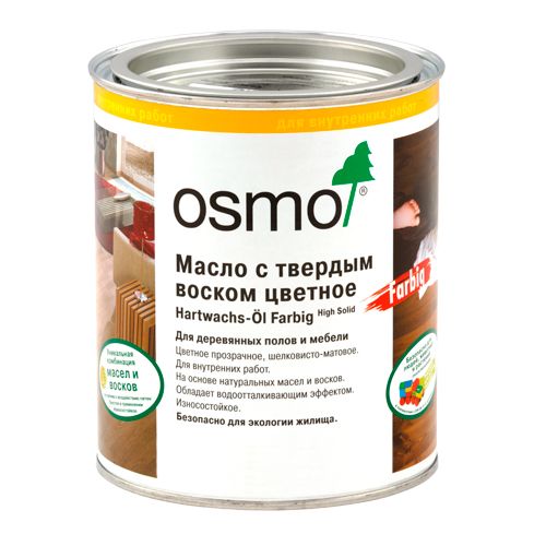 Предлагаем купить: Масло с твердым воском ЦВЕТНОЕ OSMO в Ярославле. Это Масло с содержанием твердого воска для обработки массивной доски, паркетной доски, паркета, полов из пробки, ОСП-плит, а также мебели и изделий из клееной древесины