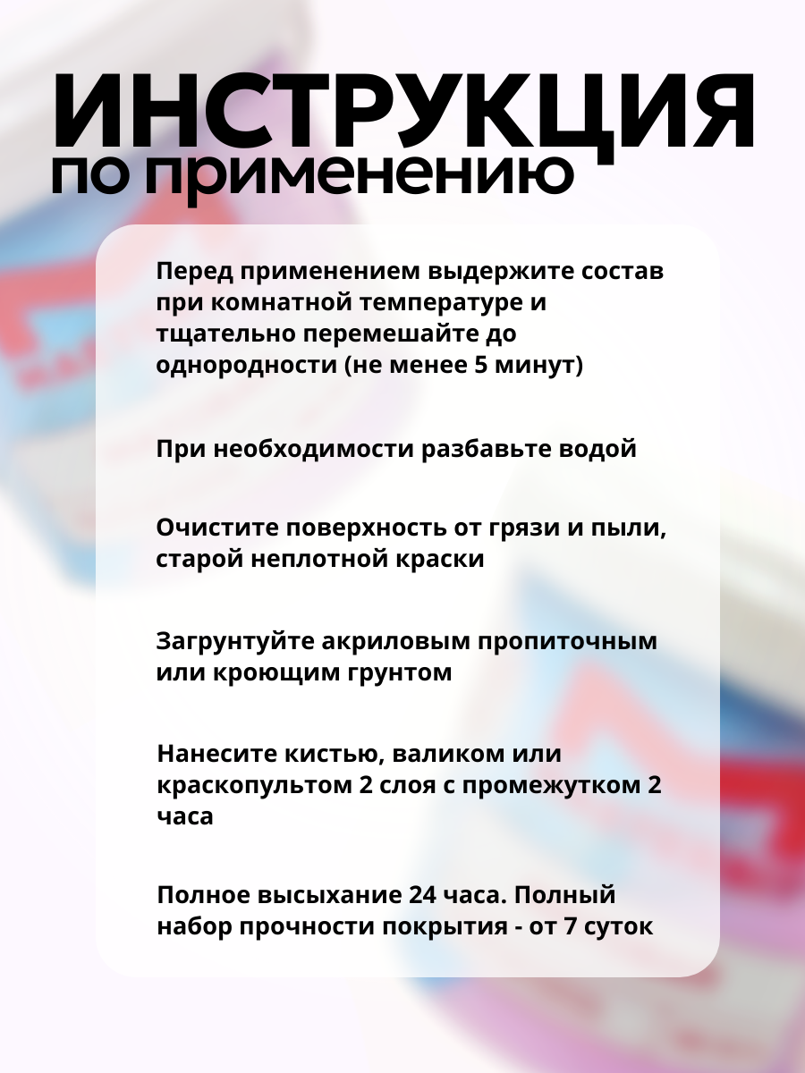Рекомендуется нанесение в 2 слоя с промежуточной сушкой 2 часа.