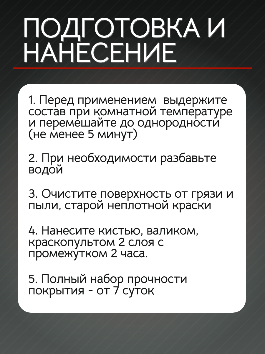 • Без запаха: Эмаль обладает практически нулевым запахом, что делает процесс её нанесения комфортным и безопасным для здоровья.
