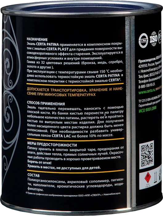 Базовым слоем для патины выступает универсальная эмаль CERTA-PLAST.