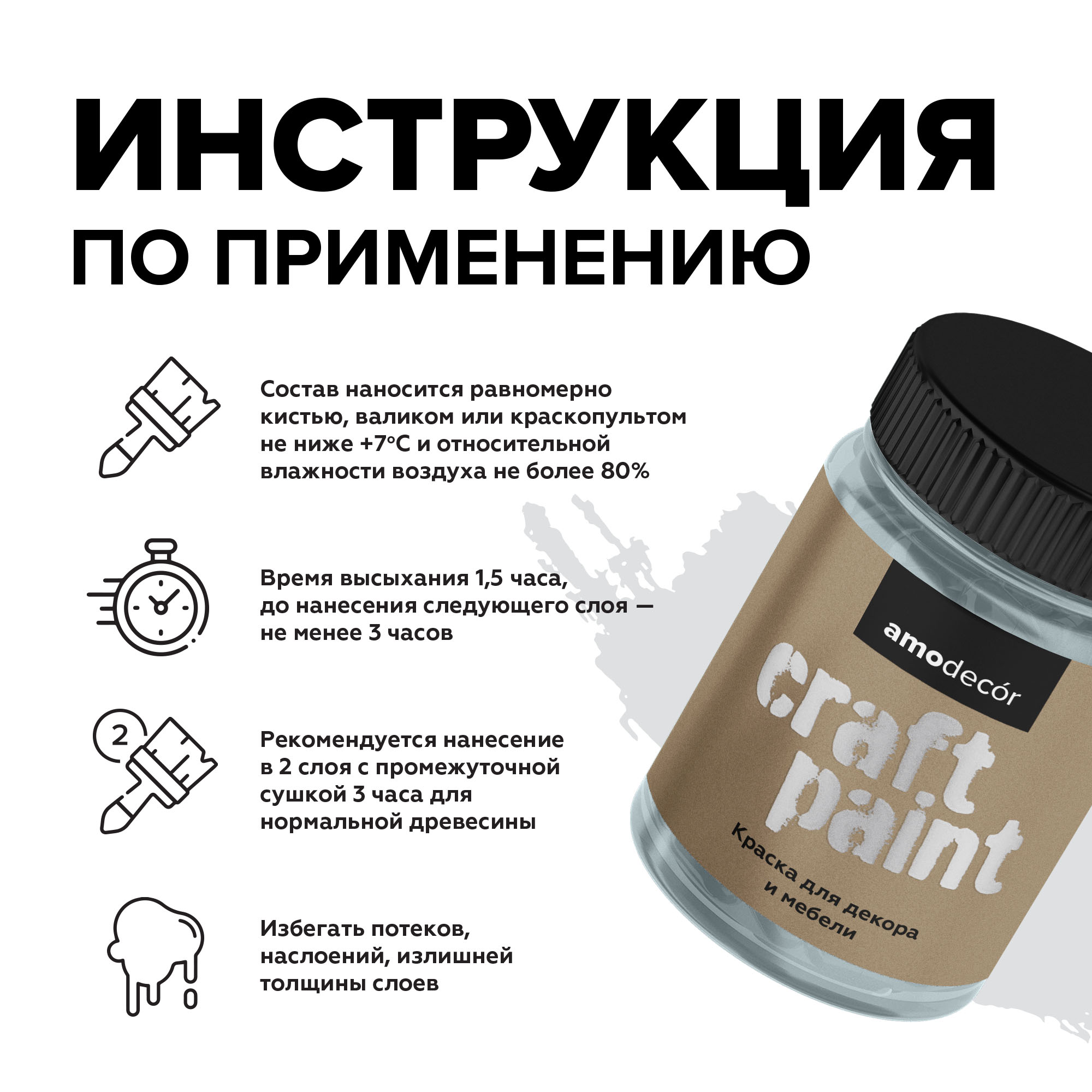 Меловая краска для мебели АМОdecor Основа C - для колеровки в насыщенные тона 0,23 кг от официального поставщика AMO в Ярославле - Мебельная меловая краска АМОdecor — это идеальный выбор для создания уютного интерьера с акцентом на натуральность и экологичность. На водной основе, она отличается отсутствием запаха, что делает её идеальной для использования внутри помещений. Краска обладает матовой текстурой, которая добавляет мебели элегантность и глубину цвета. Благодаря своему составу, АМОdecor безопасна для здоровья и окружающей среды, обеспечивая долговечное покрытие, которое легко наносится и быстро высыхает. Её декоративные свойства позволяют преобразить любую мебель, добавляя индивидуальности и стиля в ваш дом.